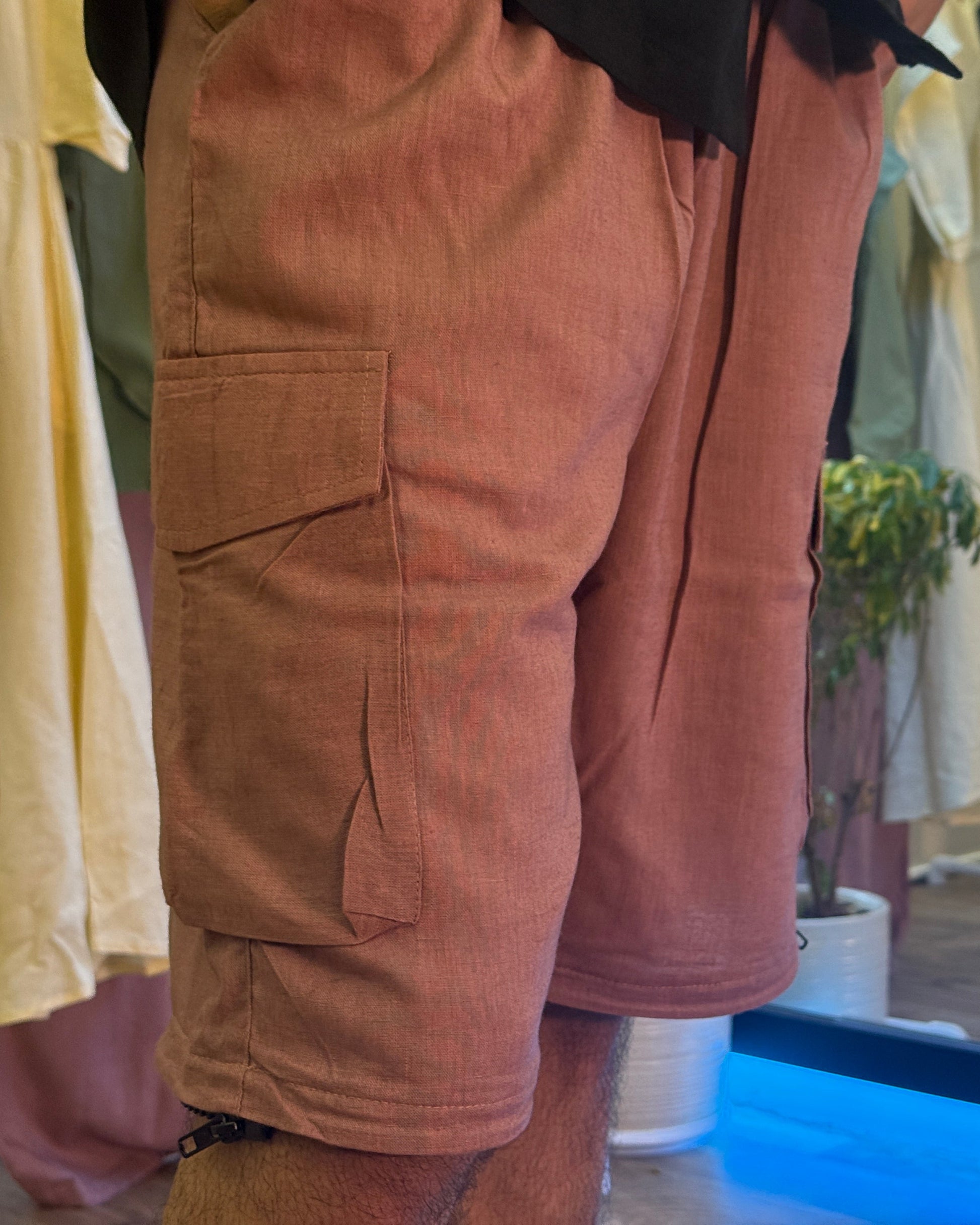 Versatility meets bold design in The Pivot Cargo. Crafted from premium cotton-linen, these cargo pants feature a striking chain detail around the knees and a detachable design that transforms full-length trousers into shorts in seconds. Whether you’re on the move or setting your own pace, The Pivot Cargo adapts to your style and environment — combining functionality with statement-making edge. A perfect choice for those who demand innovation in every stitch.